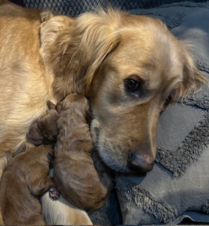 Ristretto is a gorgeous pure Golden Retriever. She loves water and to fetch things. She is very sweet and loves her time with the family. Ristretto just loves life! She is DNA clear and has a certificate from a canine ophthalmologist confirming she is clear from PRA.